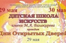 Детская школа искусств им. М.А.Балакирева проводит День открытых дверей 29 - 30 мая. Вас ожидают концерт-презентация профильных отделений, мастер-классы, открытые уроки, а также консультации по вопросам поступления и обучения в ДШИ им. М.А.Балакирева в бюджетных и хозрасчетных группах!