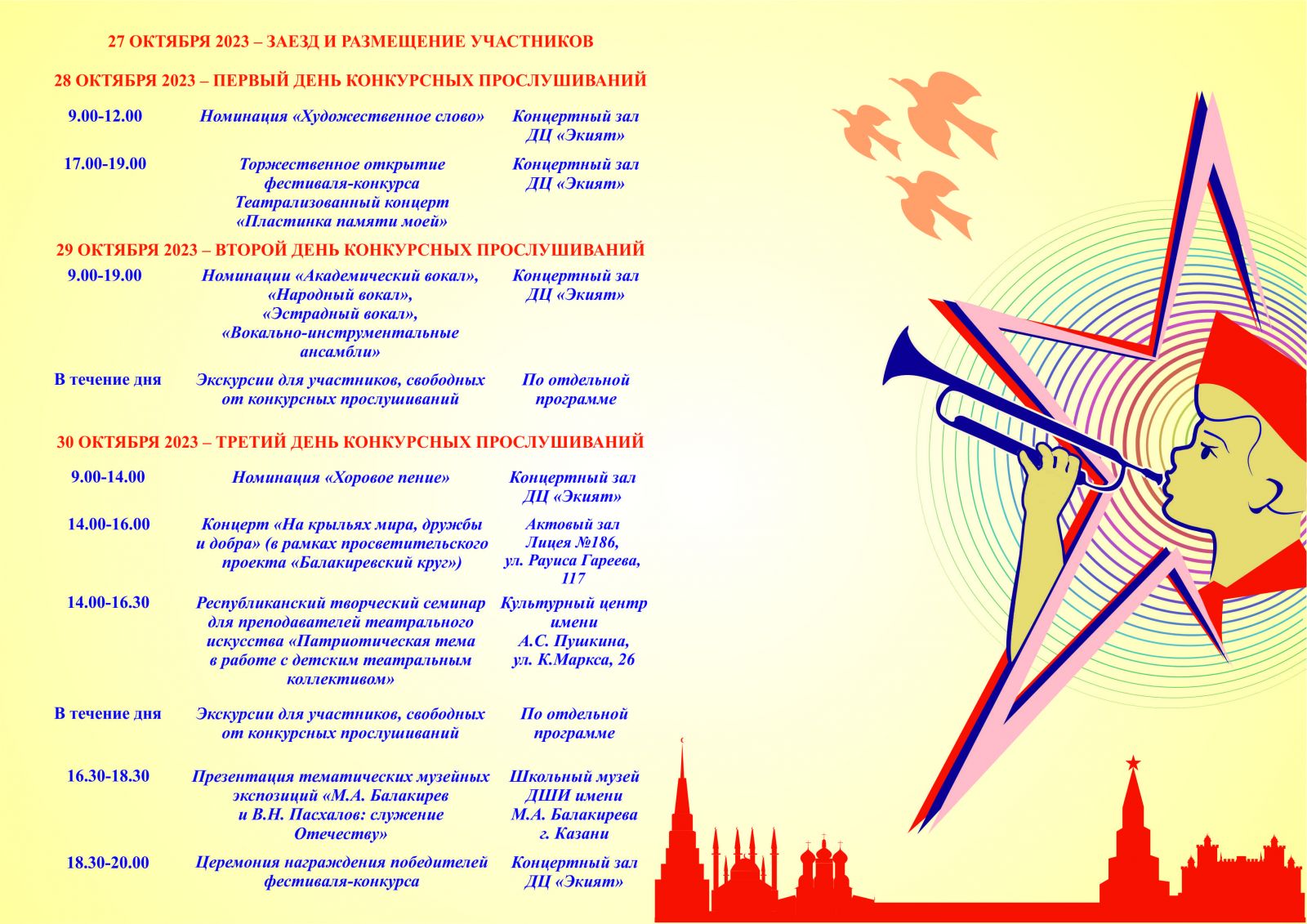 - Расписание конкурсных прослушиваний 29 октября 2023 года