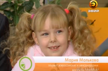 Финалистка международного отбора участников культурной Олимпиады 2014, воспитанница эстрадной студии "Maestris" Мария Молькова была приглашена в программу "Новое утро" на телеканал "Эфир". Ведущие программы Дарья Мазитова и Тимур Акулов побеседовали с Машей и её папой Сергеем Мольковым о поездке в Сочи, о творчестве и рецепте успеха. В заключении интервью Маша спела свою новую песню "Привет, Олимпиада".