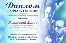 Исследовательская работа Казаковой Дании, посвященная творчеству Г.В. Свиридова, стала лучшей в Международном многожанровом конкурсе