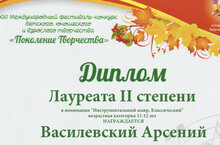 Поздравляем учащегося отделения народных инструментов Василевского Арсения и его преподавателя Валиева Руслана Фелуровича со званием лауреата II степени в Международном фестивале-конкурсе детского, юношеского и взрослого творчества «Поколение творчества»!