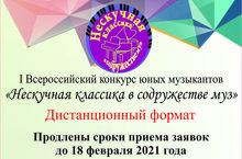 В I Всероссийском дистанционном конкурсе юных музыкантов "Нескучная классика в содружестве муз" продлены сроки приема заявок до 18 февраля.