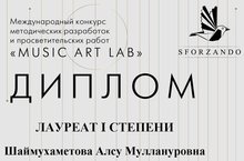 В Международном конкурсе методических разработок и просветительских работ «MUSIC ART LAB» преподаватель вокально-хорового отделения Казанской Балакиревки Шаймухаметова Алсу Муллануровна стала Лауреатом I степени! Поздравляем и желаем дальнейших побед!