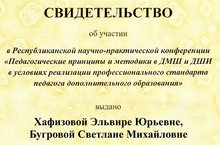 Преподаватели и концертмейстеры Казанской Балакиревки Хафизова Э.Ю, Бугрова С.М., Кузнецова О.Б., Савастьянова Н.Н. приняли участие в Республиканской научно-практической конференции «Педагогические принципы и методики в ДМШ и ДШИ в условиях реализации профессионального стандарта педагога дополнительного образования».