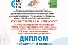 В Москве впервые в дистанционном формате прошла XXVII Мастерская Б. М. Неменского. В рамках данного мероприятия состоялся VIII Международный конкурс проектов педагогов-художников, в котором приняли участие преподаватели отделения изобразительного искусства Казанской Балакиревки Мишина А.В. и Мишина Н.В..