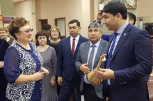 Согласно программе пребывания в Татарстане официальная делегация Западно-Казахстанской области Республики Казахстан посетила ДШИ им. М.А. Балакирева. Представители братской республики познакомились с историей и деятельностью школы, посетили занятия на отделении фольклорого искусства и хореографии, смогли оценить творчество юных художников. Большое впечатление на гостей произвели тематические экспозиции школьного музея, документальный фильм "У истоков бесплатного музыкального образования в г. Казани", снятый сотрудниками отдела истории культуры и музыкального краеведения. Хозяева и гости обменялись памятными подарками: так, балакиревцы передали казахстанцам презентационные материалы школы и традиционный татарский чак-чак, а фонд школьного музея пополнился сувенирной национальной домброй с символикой Казахстана.
