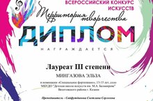 На Всероссийском конкурсе "Территория творчества" наша ученица стала лауреатом III степени 22.01.2024