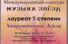 21 мая 2017 года прошел Международный конкурс "Музыка звезд", в котором участвовала Хайрутдинова Лейла (преподаватель - Мубаракова А.Я). Она стала лауреатом I степени.