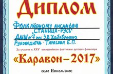 21 мая 2017 года в селе Никольское Лаишевского района Республики Татарстан состоялся XXV Всероссийский фестиваль русского фольклора "Каравон-2017", в котором принял участие фольклорный ансамбль "Станица-Русь" (преподаватель Тарасова Е.П.).