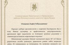 Глава Администрации Вахитовского и Приволжского районов Исполнительного комитета города Казани Лобов А.Н. выражает глубокую признательность и искреннюю благодарность Директору Сафиной Альфие Габдуллахатовне и Коллективу ДМШ №7 им.З.В.Хабибуллина за профессионализм, целеустремленность, кропотливый труд, нацеленность на достижение конечного результата в эстетическом воспитании подрастающего поколения!