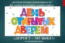 9 сентября 2023 года в ДМШ №7 им.З.В.Хабибуллина, в 10:00 начнётся День открытых дверей «ДОРОГУ – МУЗЫКЕ»!