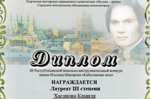 - Хазиева Малика – Лауреат III степени;