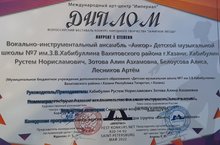 По результатам мероприятия, вокально-инструментальный ансамбль «Анкор» ДМШ №7 им.З.В.Хабибуллина (учащиеся – Белоусова Алиса, Лесников Артём; преподаватели – Зотова А.А., Хабибулин Р.Н.) – Лауреат I степени.