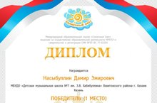- в номинации «Инструментальный жанр. Классический – соло. Возрастная категория: 6 – 9 лет», Хаертдинов Ильяс (преподаватель – Валеева Р.Б.) – Дипломант II степени;