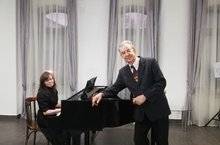 В концерте приняли участие Народный артист Республики Татарстан, Ю.А.Галявинский (бас) и преподаватель нашей школы, И.П.Романова (концертмейстер).