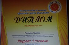 С 30 марта по 1 апреля 2019 года в Казанском детском центре «Экият» проходил Ежегодный Международный конкурс детского и юношеского творчества «Детство цвета апельсина».По итогам конкурса,в номинации «Эстрадный вокал, 10 – 12 лет», Гарипова Камилла – Лауреат I степени (преподаватели – Валеева Р.С., Магнавеева Л.Р.);в номинации «Эстрадный вокал. Ансамбль. Смешанная возрастная категория, до 9 лет», вокальный ансамбль «Елмай» – Лауреат I степени (руководители – Валеева Р.С., Магнавеева Л.Р.).ПОЗДРАВЛЯЕМ НАШИХ ЛАУРЕАТОВ И ЖЕЛАЕМ ИМ ДАЛЬНЕЙШИХ УСПЕХОВ!!! -