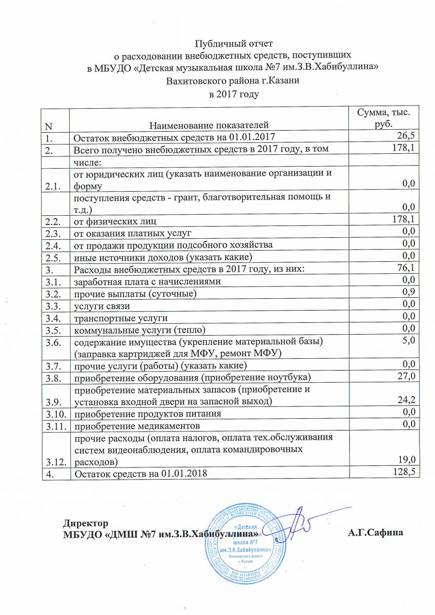 Отчет о привлечении и расходовании внебюджетных средств за 2017 год