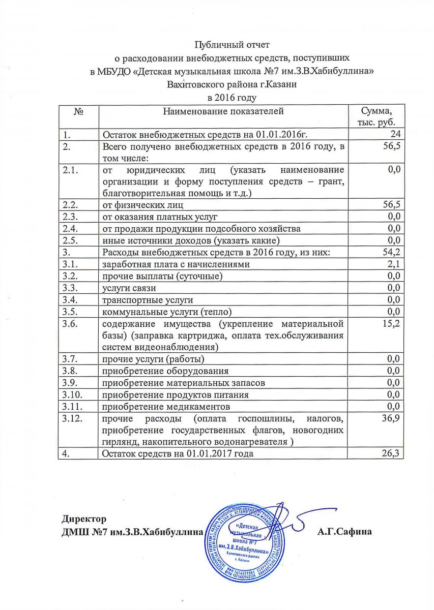 Отчет о привлечении и расходовании внебюджетных средств за 2016 год