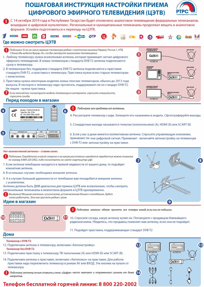 С 14 октября 2019 года в Республике Татарстан будет отключено аналоговое телевещание федеральных каналов, вошедших в цифровой мультиплекс. Успейте подготовиться к переходу на ЦЭВТ!