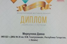 Хасамеева Аида стала Лауреатом 1 степени в номинации фортепиано и Дипломантом 1 степени в номинации вокал!