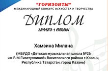 Поздравляем Гизатуллину Камилю Лемаровну и её воспитанников с отличными результатами в Международном конкурсе искусства и творчества " Горизонты"!