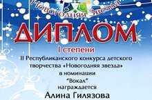 Поздравляем Гилязову Алину ,победительницу II Республиканского конкурса детского творчества " Новогодняя звезда" !