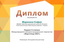 Поздравляем наших скрипачей с победами в Международном конкурсе музыкального творчества " Жар- птица 2021"!