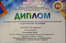 Лауреаты 3 степени: Азизова Эльза, Гилязова Алина ( преподаватель Валиева Р.Р.), Халикова Индира (преподаватель Халикова Н.Г.)