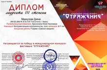 Учащиеся нашей школы стали Лауреатами Международного конкурса-фестиваля " Отражение", который прошёл при поддержке Благотворительного фонда "Люди XXI века"!