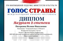 Поздравляем Полину Питеркину с победой в Международном конкурсе- фестивале " Голос страны"!