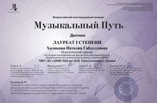 Преподаватели нашей школы Чалдаева Наталья Михайловна и Халикова Наталия Габдулловна стали Лауреатами 1 степени Всероссийского многожанрового конкурса " Музыкальный путь", организованного при поддержке фонда " Сфорцандо", где они представили свою методическую работу " Культурная идентификация как фактор воспитания нравственности у учащихся ДМШ ".