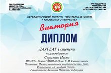 Поздравляем Сиразеева Ильяса и Наталию Габдулловну Халикову со званием Лауреата 1 степени XI Международного конкурса-фестиваля детского и юношеского творчества " Виктория"!
