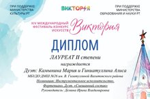 Лауреатами 2 степени стали: дуэты Гиниатуллина Алиса- Камынина Мария, Муртазина Лиана- Самигуллина Милана, Шияпова Зарина