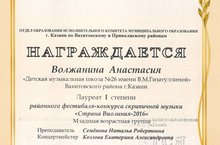 21 -24 января 2016 года на базе Центра детского творчества Вахитовского района г.Казани прошёл VIII Открытый Поволжский конкурс эстрадного мастерства детских и юношеских коллективов "Tatarstan.ru". Поздравляем лауреатов 3 степени, учащихся ДМШ №26 Дубровину Екатерину, Голубеву Таисию (преподаватель Р.Р.Валиева)!