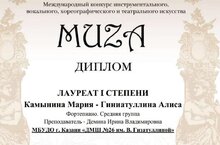 Поздравляем Дёмину Ирину Владимировну с победами её учеников, участников фортепианных ансамблей, которые стали лауреатами Международного конкурса " Муза":