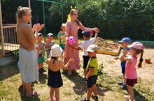 Сегодня прошёл "Праздник Лета". Участие приняли ребята младших групп. Дети встретили праздник песнями, танцами, хороводами. В гости к ребятам прилетела Бабочка, развеселила детей шутками-прибаутками, загадала загадки про лето, поиграла в интересные игры. На празднике царило настроение радости и веселья, все получили заряд положительных эмоций.