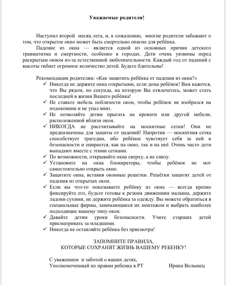 Памятка для родителей. Внимание! Безопасные окна! 09.07.2021