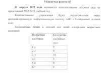 01 апреля 2022 года начинается комплектование детского сада на предстоящий 2022/2023 учебный год.