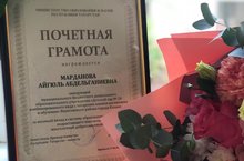 Поздравляем нашу заведующую Марданову Айгюль Абдельганиевну с почетной грамотой Министерства образования и науки РТ "За весомый вклад в систему образования, за многолетний и плодотворный труд". Желаем ей в дальнейшей трудовой деятельности успехов и покорения новых вершин!