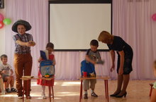Сентябрьда безнен бакчада "Белем бэйрэме" булып узды. Балалар биеделэр, жырладылар, конкурсларда катнаштылар. Балалар янына кунакка Незнайка белэн Финтифлюшка да килде. Алар балаларга булэклэр алып килделэр, уеннар уйнаттылар. Бэйрэм бик матур хэм кунелле узды.