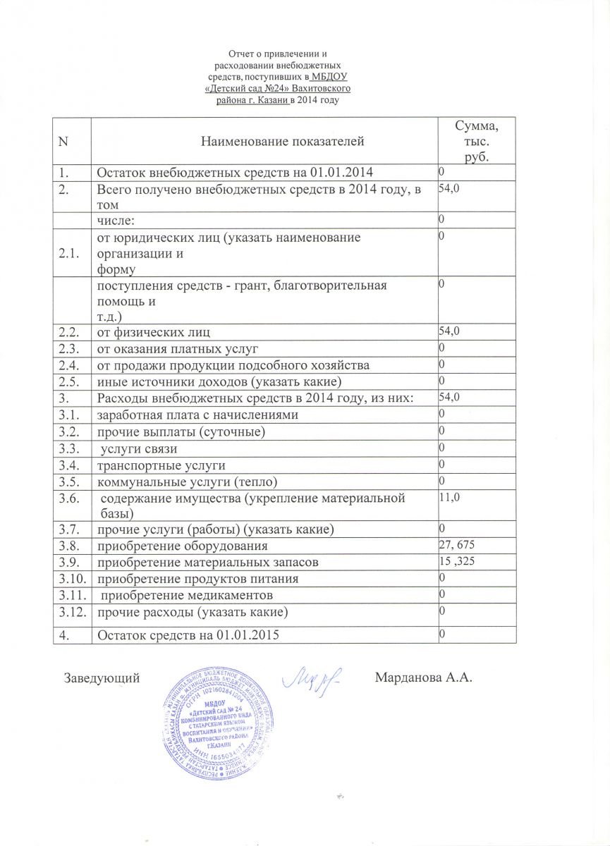 Отчет о привлечении и расходовании внебюджетных средств за 2014 год