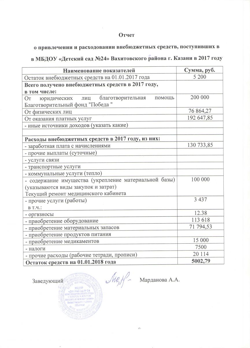 Отчет о привлечении и расходовании внебюджетных средств за 2017 год