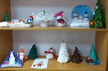 В детском саду проходит выставка совместных поделок "Подарки деду Морзу". Дети вместе с родителями с удовольствием делают поделки своими руками для любимого дедушки Мороза.