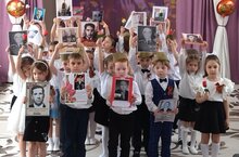 Сегодня в нашем детском саду прошел праздник, посвященный Дню Победы. Дети рассказали о героических боевых буднях своих прадедушек и прабабушек, пели фронтовые песни, читали стихи о войне. Минутой молчания почтили память павших героев в Великой Отечественной войне.