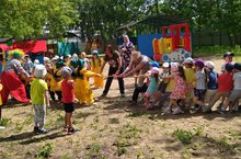 В нашем детском саду стало традицией в начале июня проводить праздник Сабантуй. В празднике приняли участие все дети. Ребята показали свою ловкость и умения в национальных играх «Эй, дружок, продай горшок», «Бег в мешках», «Бой подушками», «Перенеси яйцо в ложке», «Перетяни канат». Самым сложным для ребят, оказалось, попасть по горшку с закрытыми глазами, но и с этим испытанием они справились! А затем воспитанники водили хоровод и танцевали под национальную музыку. Весело прошел Сабантуй!