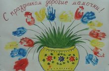 К празднику "День матери" с маленькими творцами II младшей группы воспитатель I кв. категории Сапарина Е.В. провела коллективное рисование с использованием нетрадиционной техники рисования - рисование ладошкой на тему "С праздником, дорогие мамочки!"