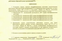 " Об устанавлении первой и высшей квалификационных категорий педагогическим работникам образовательныхорганизаций РТ".