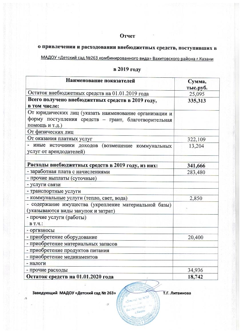 Отчёт о расходовании внебюджетных средств за 2019 г.