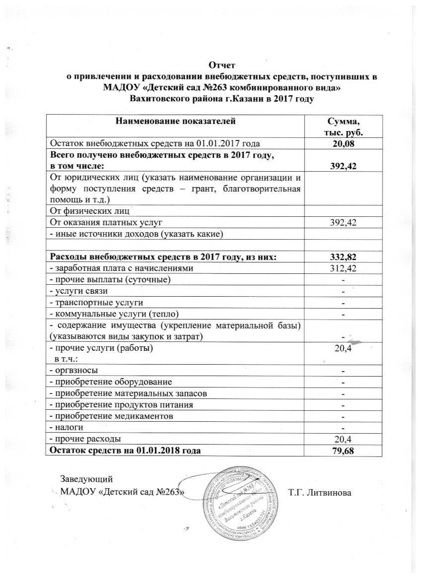 Отчёт о расходовании внебюджетных средств за 2017 г.