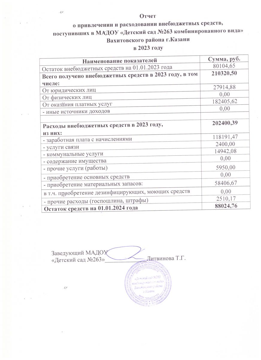 Отчет о привлечении и расходовании внебюджетных средств за 2023 год.